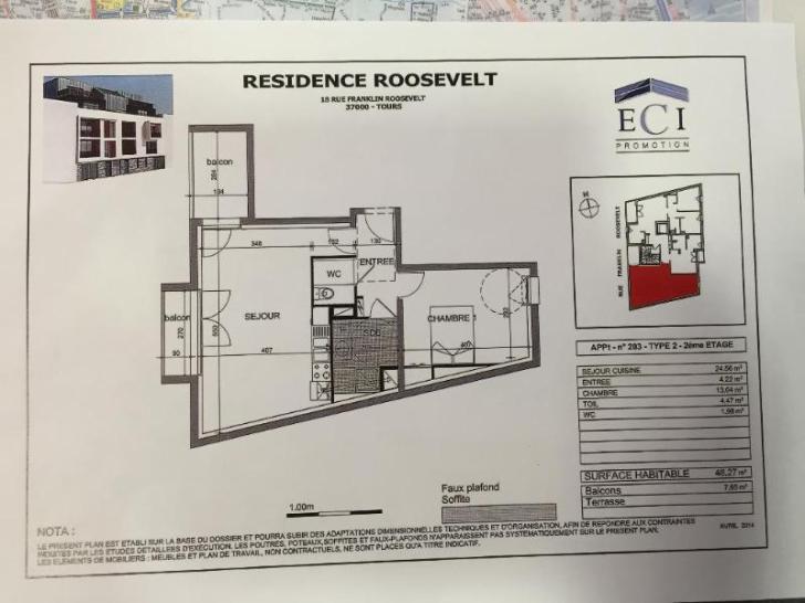 Tours#Appartement T2-48 m²#Cuisine aménagée et équipée (plaque, hotte)#Appartement 2ème étage comprenant entrée, séjour cuisine A/E (plaque, hotte) 1 chambre avec placard, 1 salle d'eau, WC séparé, 2 balcons, 1 parking privatif. Disponible 08/06/2016