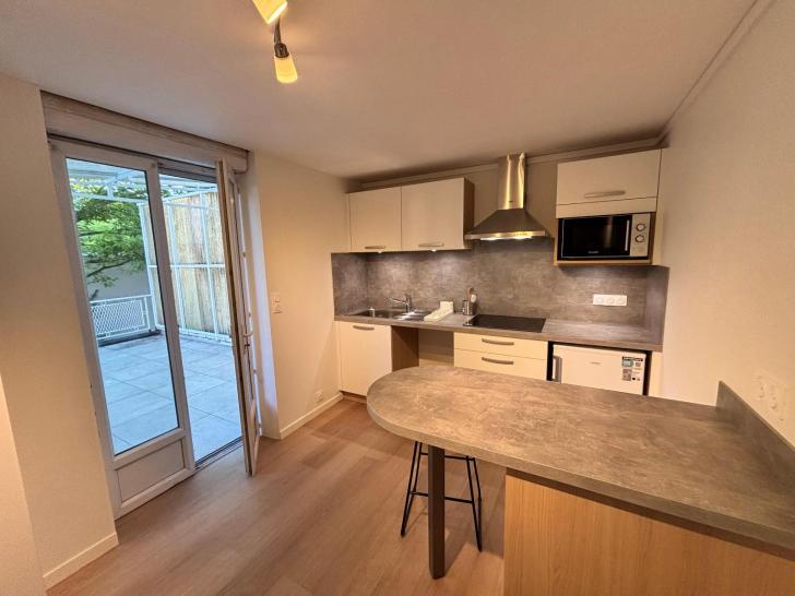 Dans une petite résidence située dans une rue calme, découvrez ce charmant T1 meublé entièrement rénové, disposant d'une spacieuse terrasse de 12 m², idéale pour profiter des beaux jours.